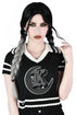 Team Goth FTW! Our 'Gloomsday' Knit Crop Top gives serious zombie cheerleader vibes! Relaxed and comfortable with with KILLSTAR appliqué branding, deep V neckline and stripped collar! Channel your inner cheerleader and support team Goth!