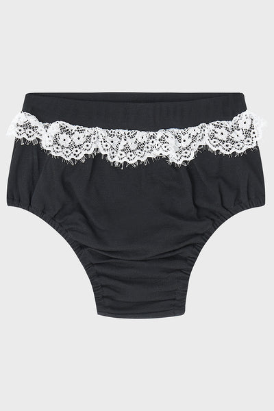 - Lace trim around waistband of bottoms.