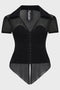 - Elasticated puff short mesh sleeves.