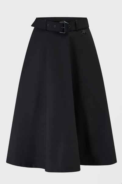 - Detachable self fabric belt with coffin buckle and metal eyelets.