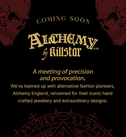 Founded in 1977 by two audacious punk and metalhead brothers, forged in the heart of a tiny kitchen, what began as a dream grew into a world-renowned jewellery brand redefining alternative culture one bold, iconic design at a time. This limited collection fuses Alchemy’s refined, architectural silhouettes with KILLSTAR’s signature dark romanticism.